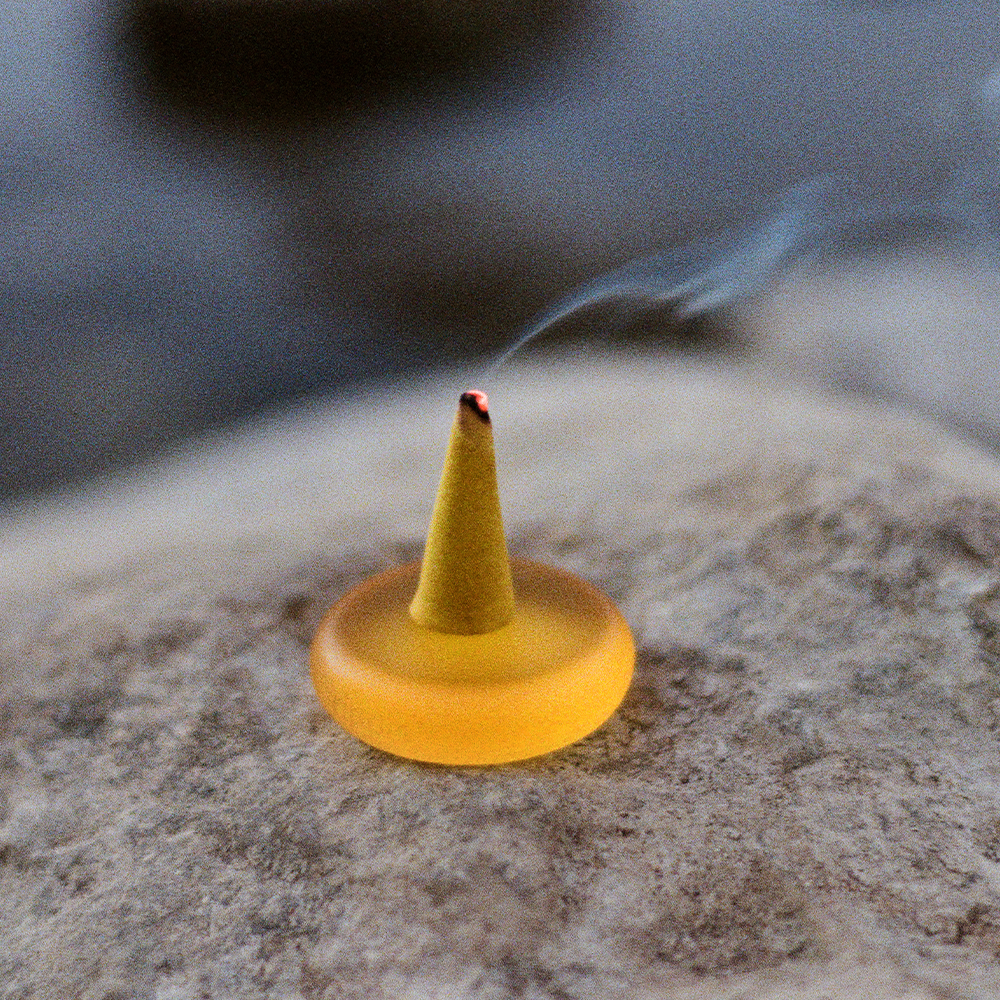 Place your droplet on top of the sea glass holder, grab your light, light the tip of your droplet and gently blow out after a few secs. Now, settle down & let the flame burn.