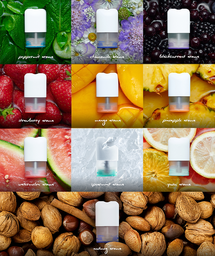 aromas: peppermint, jasmine, blackberry, mango, watermelon, strawberry, spearmint, yuzu, nutmeg, pineapple