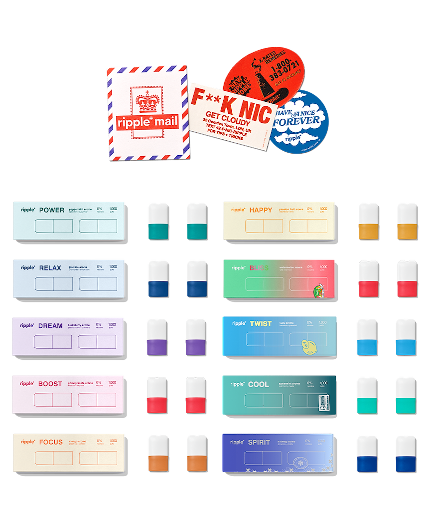 o-nic desires. From peppermint to blackberry - watermelon to jasmine. The world of ripple⁺ is at your feet.