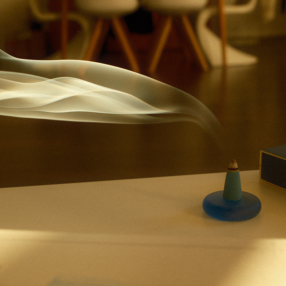 Place your droplet on top of the sea glass holder, grab your light, light the tip of your droplet and gently blow out after a few secs. Now, settle down & let the flame burn.