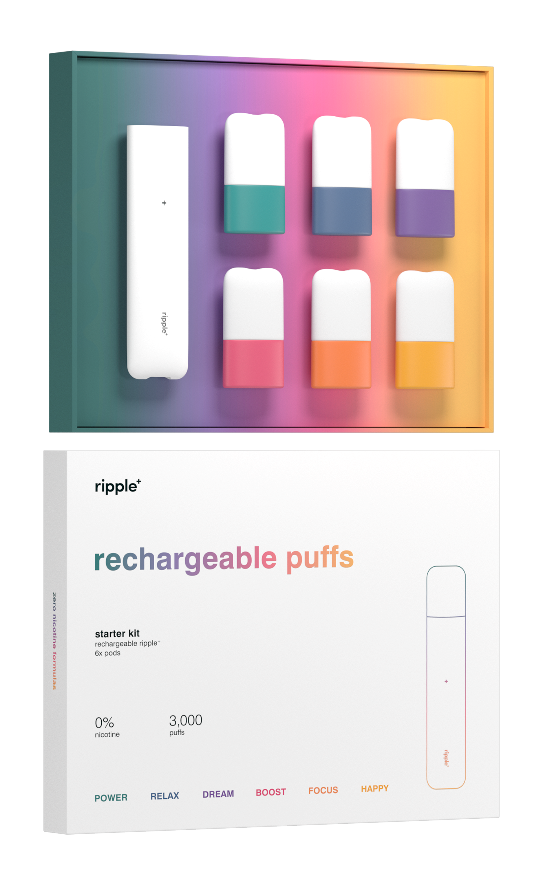 Each ripple⁺ pod will deliver 500 puffs (each pack contains 2x pods), meaning you get multiple days & weeks of plant-powered goodness. You know where to find us when you need a new batch!