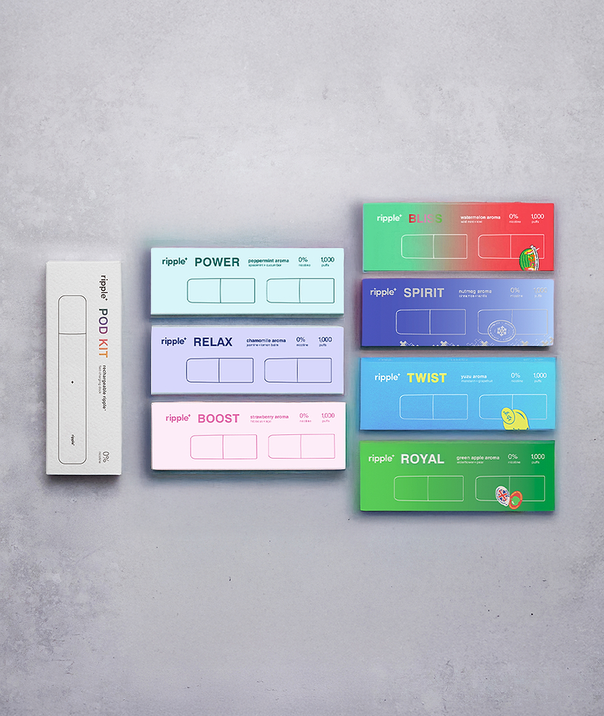 You have every ripple⁺ aroma available at the tip of your fingers. Rechargeable device. 7 aromas. 7,000 puffs. Non-stop enjoyment. This experience will leave you in a cloudy state, but you’ll be experiencing the ripple⁺ world in full effect.