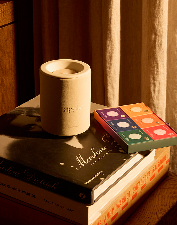 The ripple⁺ wax warmer is a sculptural ceramic piece designed to diffuse melted wax fragrance. Crafted for both form & function, it melts your chosen wax aroma, releasing scent that not only elevates your atmosphere, but adds an artistic touch to your home.