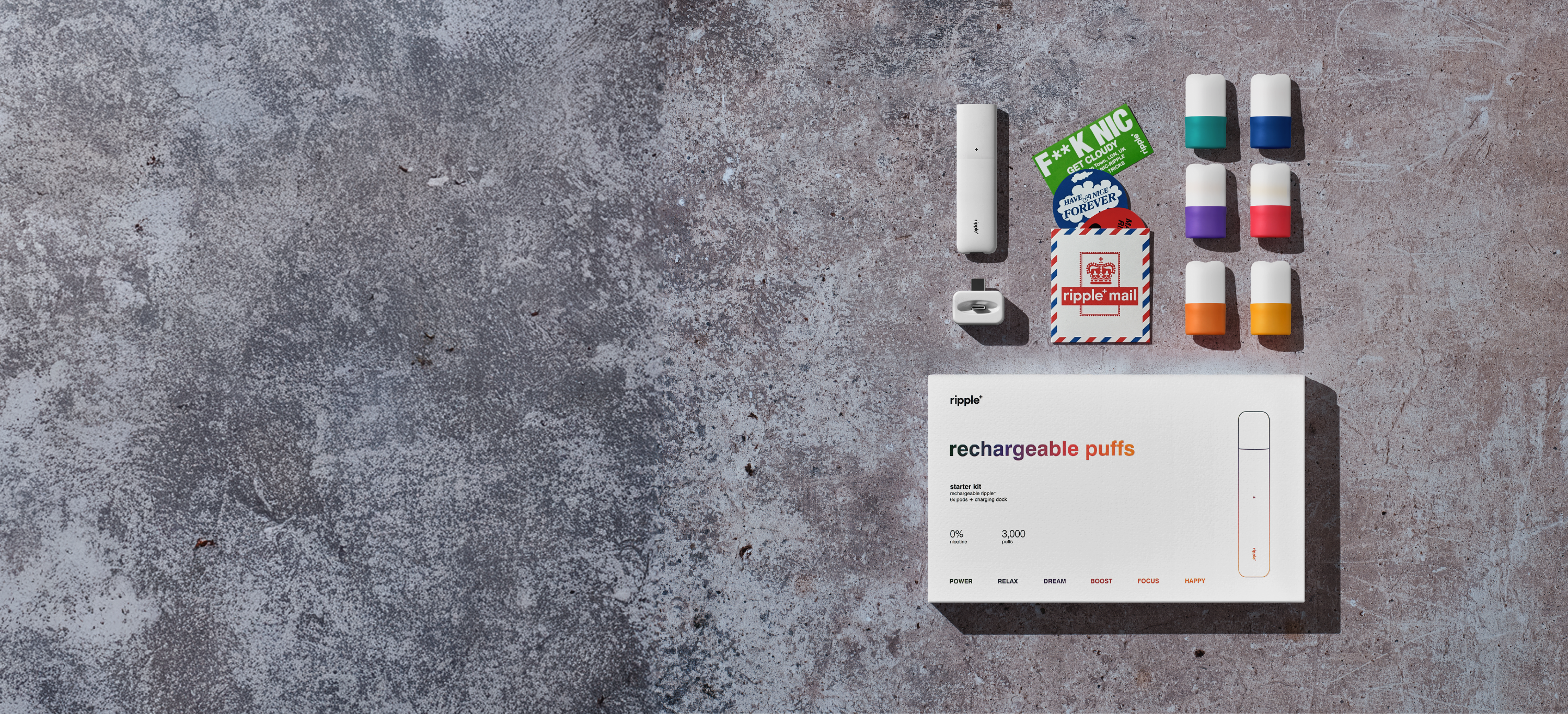 Yes! We’re fully committed to being as kind to the planet as possible, keeping our environmental impact to a minimum. We use sustainable materials that make all ripple⁺ components 100% recyclable. We also offer a recycling program that allows you to send back your used single devices & PODS back to us for 20% off your next order! Head over to our recycling page to get involved.